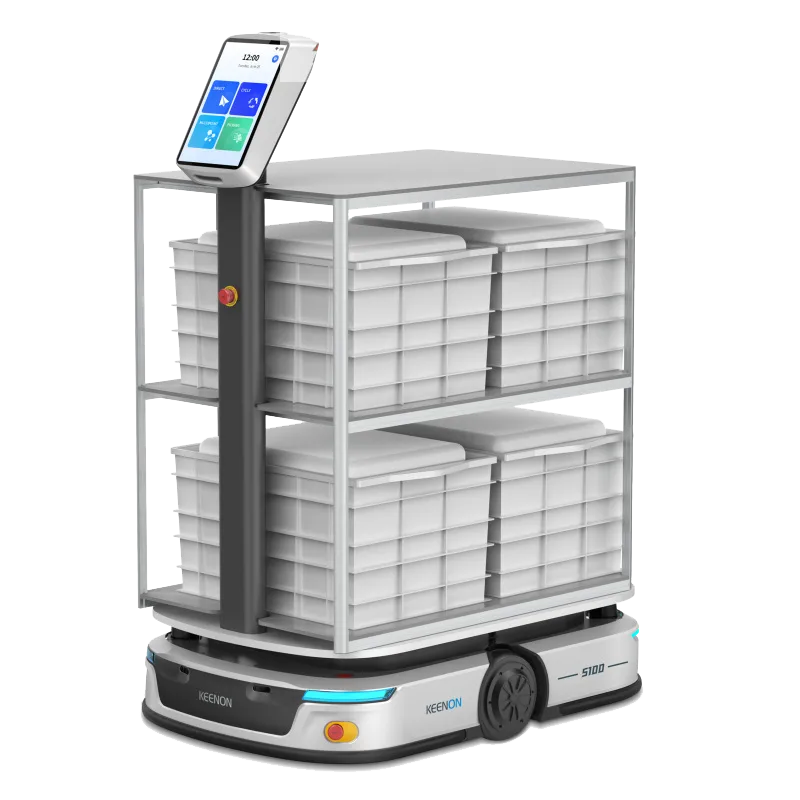Transportroboter S100 – Keenon Schwerlastroboter für mühelose Lieferungen mit einer Tragfähigkeit bis zu 100 kg+. Der Keenon Lieferroboter S100 für schwere Lasten steht für die Neudefinition der industriellen Mobilität.